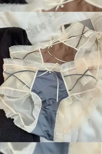 Soft 3728 – Vintage Lace Bow Satin Panties Set