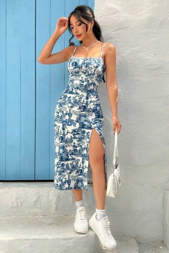 فستان “بلو غريس” هو الخيار المثالي لإطلالة صيفية أنيقة وعصرية. يتميز بقصة ضيقة تبرز جمال القوام، مع فتحة جانبية جذابة تضيف لمسة من الجرأة. التصميم مستوحى من النقشات الكلاسيكية الزرقاء على خلفية بيضاء ناعمة، ليمنحكِ مظهرًا راقيًا وعصريًا في آنٍ واحد.