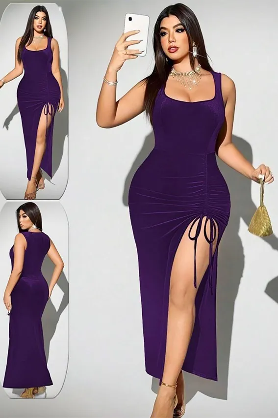 فستان سهرة نسائي طويل ، بتصميم جريء برباط جانبي وفتحة صدر عميقة. مثالي للمناسبات الخاصة والسهرات الصيفية.Freesize (60 : 80)