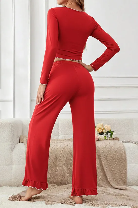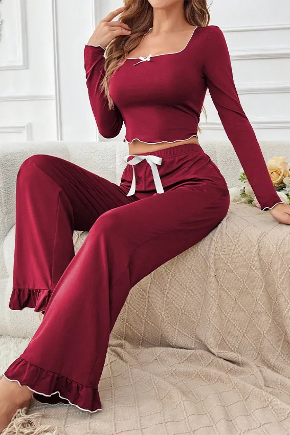 Dolley 1004 – Square Neck Ruffle Hem Loungewear Set