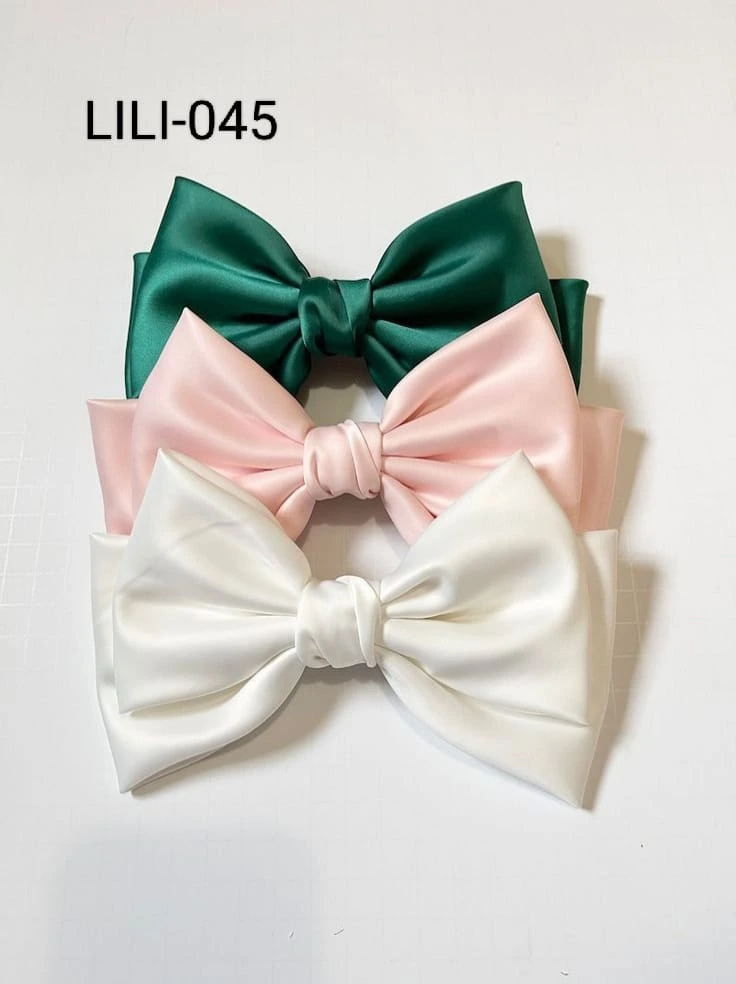 مجموعة من 3 مشابك شعر أنيقة بتصميم فيونكات من الساتان الناعم بألوان جذابة: الأخضر، الوردي، والأبيض. مثالية لإضافة لمسة جمالية ناعمة وملونة لتسريحات الشعر اليومية أو للمناسبات الخاصة