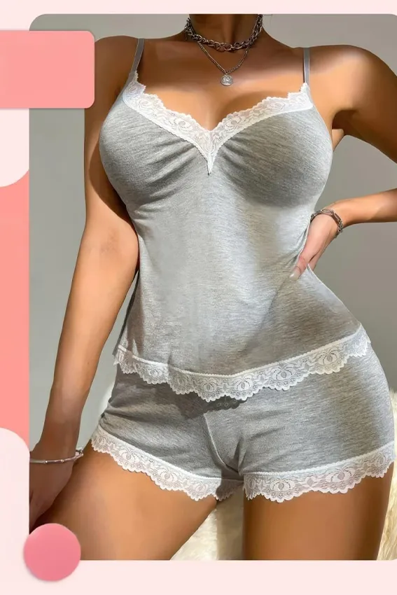 البلوزة (التوب) حمالات رفيعة على الكتف والبنطلون شورت قصير (هوت شورت).