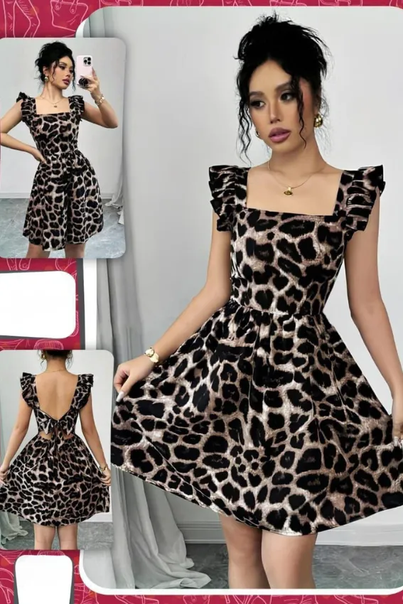 🐆 فستان قصير بكشكشة “Wildheart Ruffle Mini Dress” – لمظهر جريء وعصري